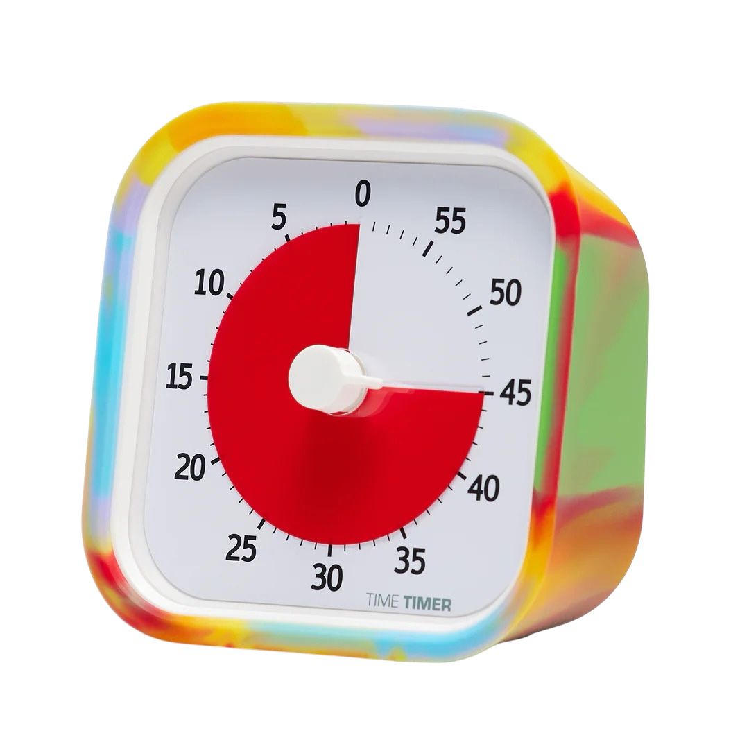 El Time Timer MOD® — Edición Especial Tie Dye es un temporizador visual de 60 minutos que hará que la gestión del tiempo y la productividad sean divertidas. Esta edición especial despierta la pasión y añade color y energía a las tareas cotidianas. ¿Por qué debería ser aburrida la productividad?